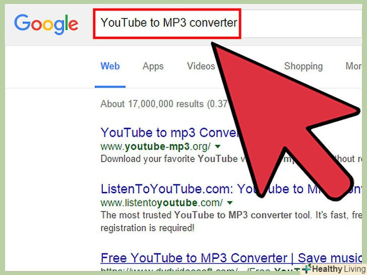 Знайдіть онлайн-сервіс для перетворення YouTube в MP3.відкрийте нову вкладку або вікно браузера і надрукуйте "конвертувати YouTube в MP3" в пошуковому рядку. У результатах такого пошуку напевно виявиться чимало онлайн-сервісів. Різні сайти пропонують різну якість MP3, тому вибирайте оптимальний безкоштовний варіант. Такі Сайти постійно змінюються, так що рекомендується прочитати поточні відгуки про сервіс.- Якщо сайт пропонує платну послугу, то це вірна ознака шахрайства. Виберіть інший сервіс, який не вимагає плати за конвертацію.