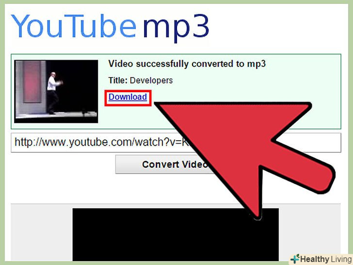Завантажте конвертований файл.коли завершиться процес конвертації ролика в файл MP3, на екрані повинна з'явитися кнопка "Download" (Завантажити). Натисніть кнопку, щоб завантажити файл на свій комп'ютер.