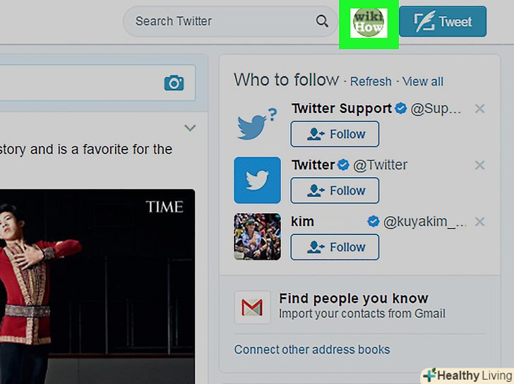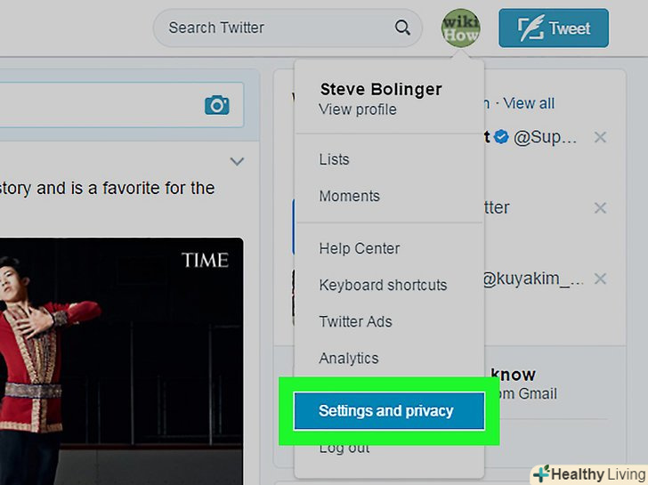 Натисніть на шестірню в правому верхньому куті головної сторінки. вона знаходиться між рядком пошуку і кнопкою написання нового твіту.