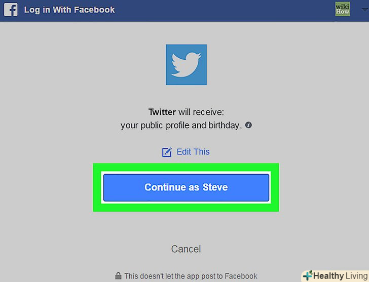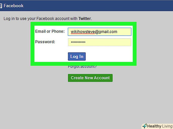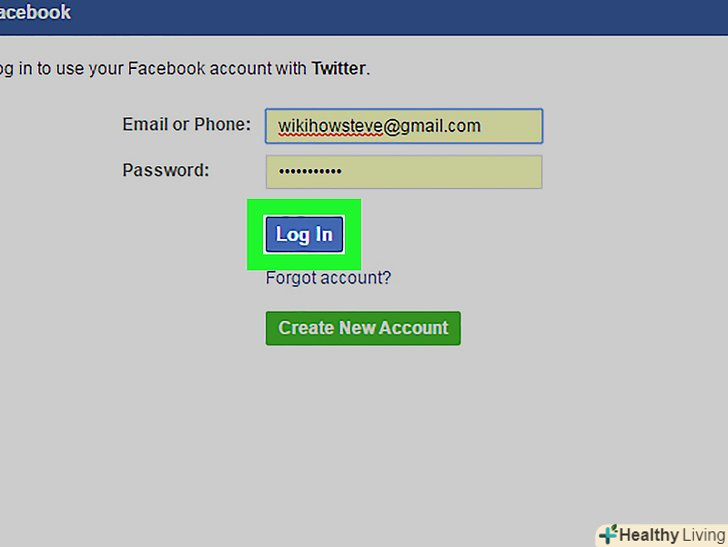 Увійдіть у Facebook.введіть свій e-mail і пароль для Facebook. Якщо Facebook вже відкритий, вам не потрібно буде цього робити. Після цього Twitter попросить дозволу публікувати від вашого імені.