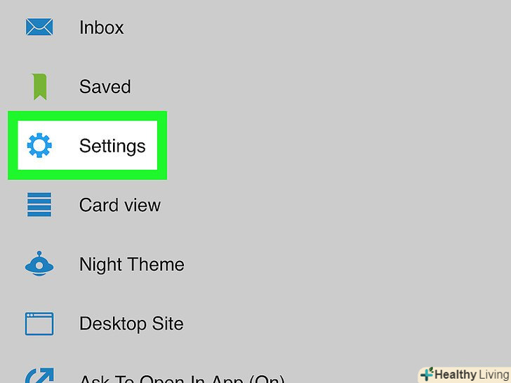 НатиснітьSettings (Налаштування).відкриється меню "Налаштування" комп'ютерної версії сайту Reddit.