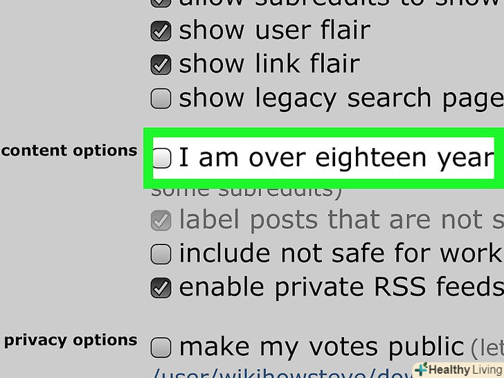 Зніміть прапорець біля «I am over eighteen years old and willing to view adult content "(я старше вісімнадцяти років і хочу переглядати контент для дорослих). ви знайдете цю опцію в розділі " Content options "(Параметри контенту) в нижній частині екрана.