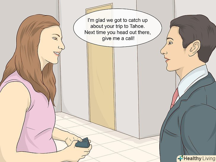 Закінчіть розмову фізично.як тільки розмова закінчиться, ви повинні потиснути людині руку, помахати рукою або грайливо поплескати його по плечу в залежності від контексту ситуації. Це допомагає дати знак, що вам потрібно йти. Якщо вам дійсно сподобалася людина, і ви хочете зустрітися з ним знову, ви можете обмінятися телефонами або візитками. Дайте людині шанс. Можливо, наступного разу з ним не буде так нудно.