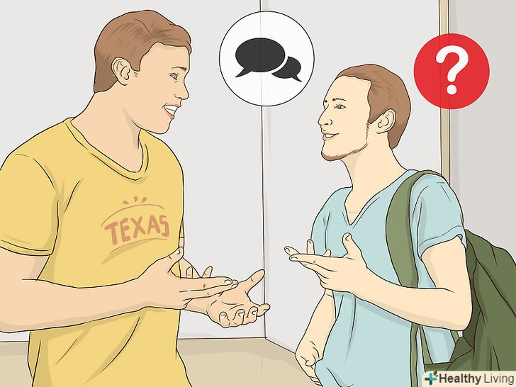 Попросіть друга допомогти вам.хоча це не самий зрілий вчинок у світі, ви, можливо, відчуєте себе в розпачі і зловите погляд одного. Ви можете дати йому знак про те, що ви жадаєте «порятунку». Ваш друг повинен розуміти, що це соціальна необхідність і прийти до вас на допомогу. Якщо це трапляється з вами занадто часто, ви можете придумати свої сигнали про допомогу, наприклад, доторкнутися до вуха або прочистити горло. Хоча це не повинно бути надто очевидним, ваш друг зрозуміє, що вам потрібна допомога.- Друг підійде і скаже: «Вибач, але мені дуже потрібно з тобою поговорити». Потім ви вибачитеся і підете.