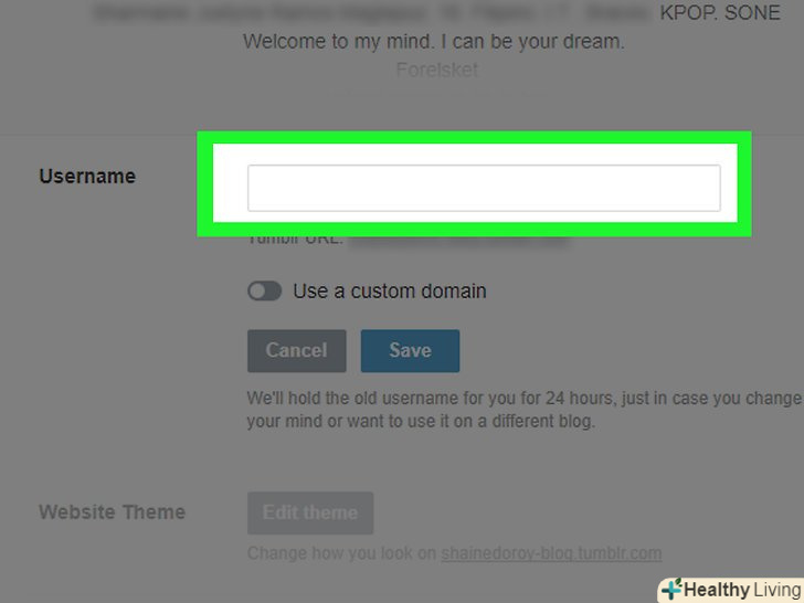 Надрукуйте нове ім'я користувача.після цього зміниться ваша адреса в Tumblr.
