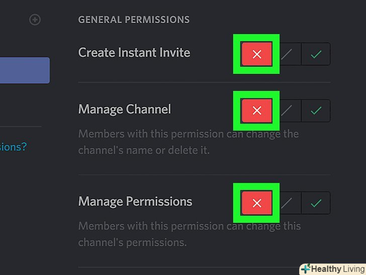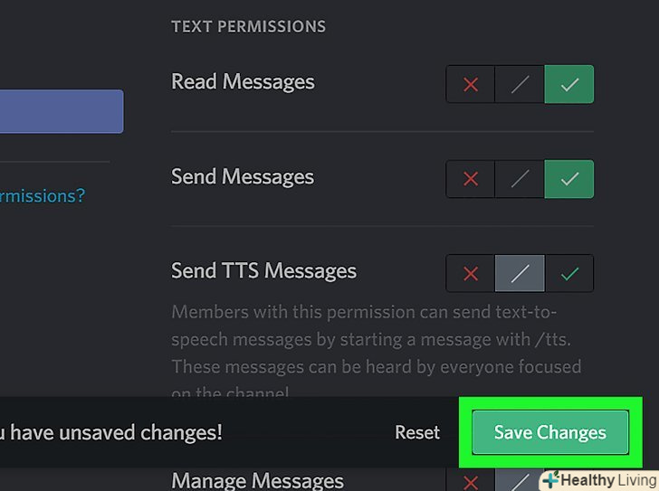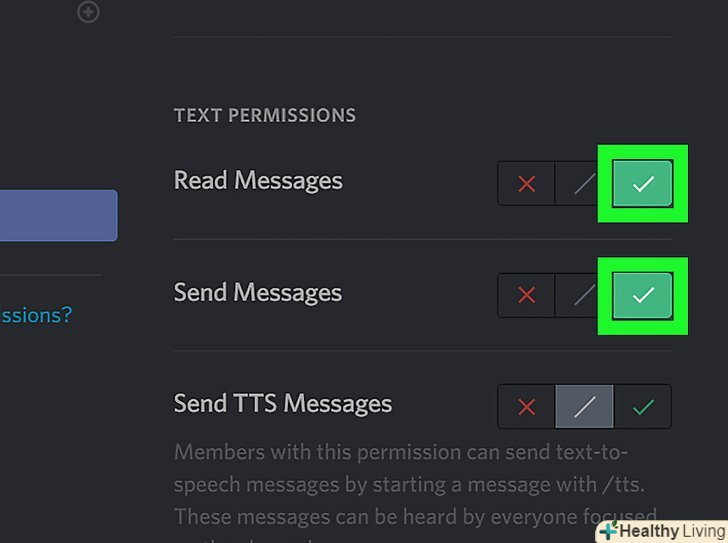 Виберіть права доступу для того чи іншого користувача. натисніть на зелену галочку поруч з кожною опцією. Наступні права рекомендується залишити, щоб користувачі могли спілкуватися один з одним:- Читати повідомлення;