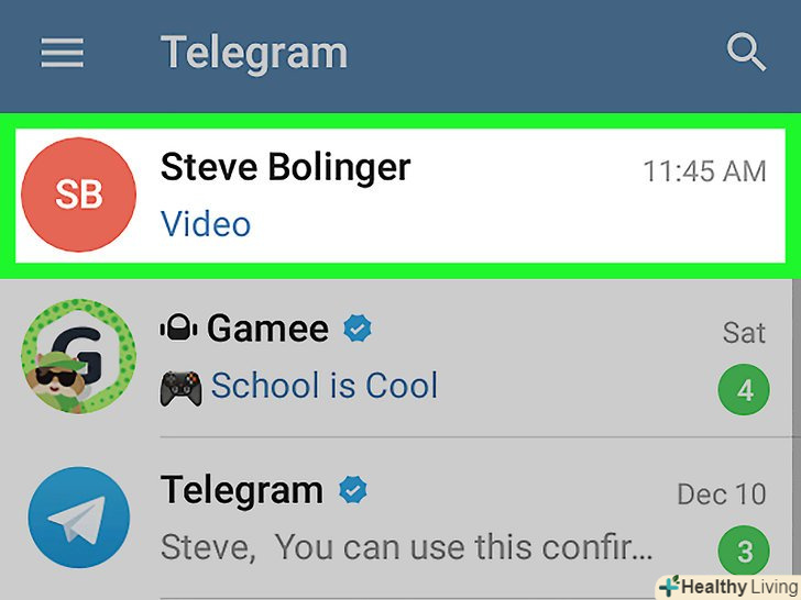 Запустіть програму Telegram на своєму пристрої.його іконка виглядає як білий паперовий літачок на синьому тлі. Зазвичай він знаходиться на одному з робочих столів або на панелі додатків.