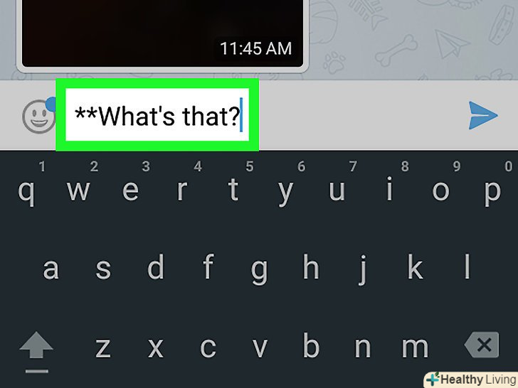 Натисніть кнопку "НАДІСЛАТИ". вона виглядає як синій літачок і знаходиться в правому нижньому кутку екрану. Слова, набрані між подвійними зірочками, відобразяться жирним шрифтом.- У цьому ж повідомленні можна надіслати звичайний текст (без жирного шрифту). Просто не ставте зірочки до і після цього тексту.