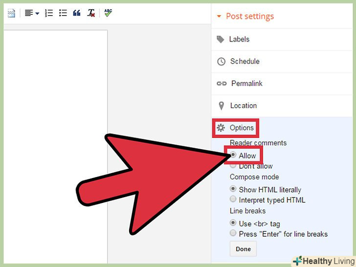 Розділ "Post Options", розташований під віконцем текстового редактора, дозволяє вам управляти коментарями читачів, настройками HTML, датою і часом написання поста.