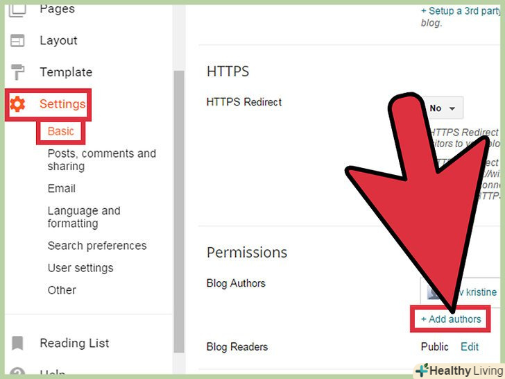 Ви можете додати і інших авторів, щоб вони могли писати і редагувати блог, якщо натиснете Settingsgt;Permissionsgt; Add Authors.