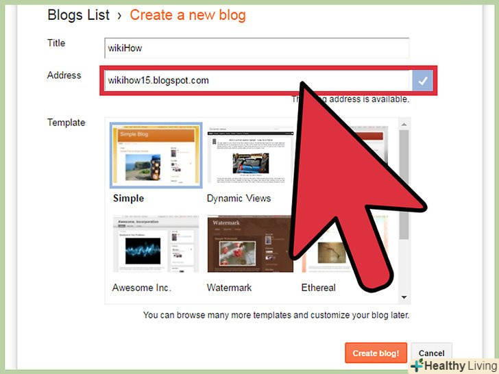 Виберіть назву для блогу (Blog title) і вільну адресу (URL).перевірити, чи вільна адреса, можна за посиланням»Check Availability".