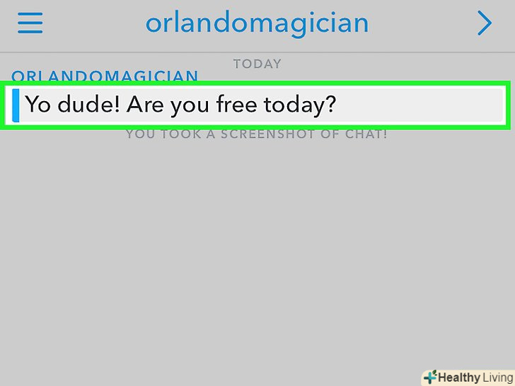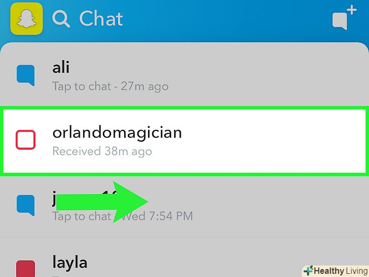 Проведіть пальцем вправо, щоб відобразити меню чату.- Не можна зробити скріншот знімка, який ви вже відкривали і закривали.