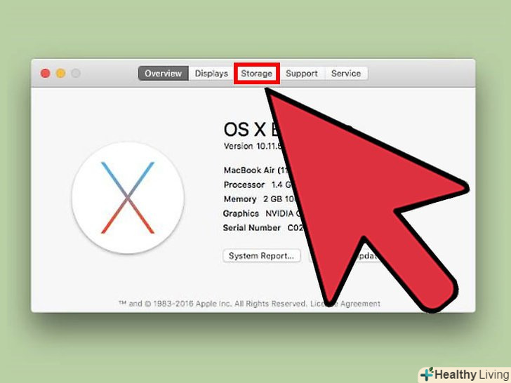 Перегляньте інформацію про жорсткий диск. у опції «Macintosh HD» ви знайдете такий запис: «вільно X ГБ з Y ГБ», де «X» — це вільна ємність, а «Y» — загальна ємність жорсткого диска.- На екрані також відобразиться інформація про те, які типи файлів займають найбільший обсяг жорсткого диска. Використовуйте цю інформацію, щоб видалити непотрібні файли і збільшити вільний обсяг жорсткого диска.