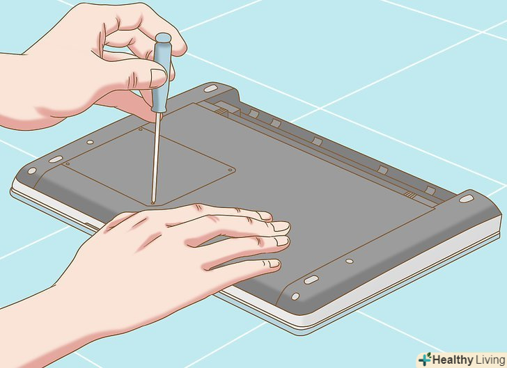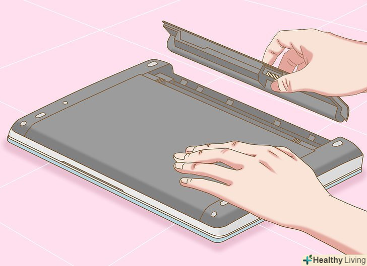 Зніміть акумулятор, якщо у вас ноутбук.в іншому випадку ви можете отримати удар електричним струмом.[4]- На нижній панелі більшості ноутбуків є спеціальна кнопка, за допомогою якої можна швидко зняти батарею. Але на деяких ноутбуках вам доведеться відкрити (викруткою) батарейний відсік і витягти акумулятор.