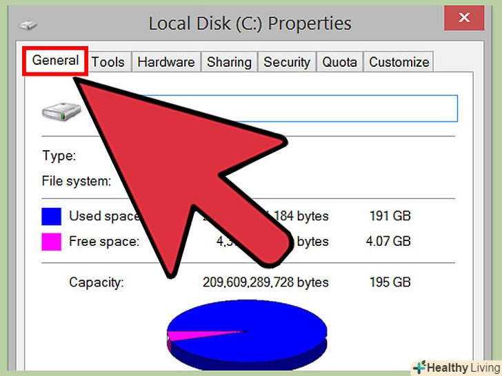 Перейдіть на вкладку "Загальні".на ній ви знайдете загальну, використовувану і вільну ємність жорсткого диска; значення будуть представлені у вигляді графіка. Знайдіть рядок "ємність", щоб дізнатися загальну ємність жорсткого диска.