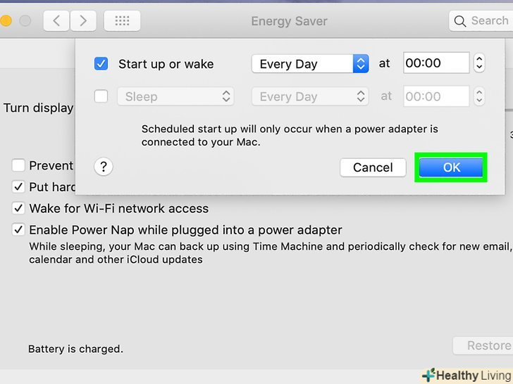 Клацніть поOK.ця кнопка знаходиться внизу вікна. Відтепер комп'ютер Mac буде автоматично включатися в зазначений вами час.