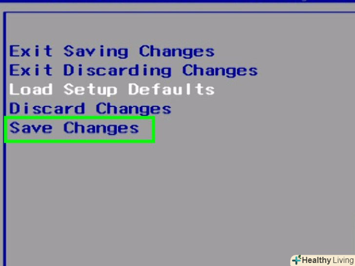Збережіть внесені зміни і вийдіть з BIOS. якщо внизу або вгорі екрану є рядок меню, на ній натисніть "File «(Файл) gt;» Save Changes and Exit" (Зберегти зміни і вийти). Якщо рядка меню Немає, Натисніть клавішу, яка відповідає опції " Save "(Зберегти) або «Save and Close» (Зберегти і закрити); список клавіш і відповідних їм опцій відображається десь на екрані. Коли ви вийдете з BIOS, комп'ютер перезавантажиться, а внесені зміни вступлять в силу.