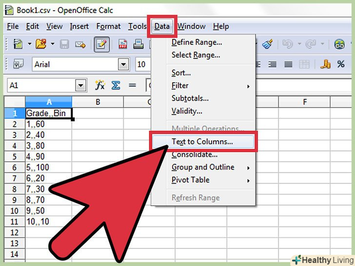 Виберіть файл CSV і натисніть "Відкрити".файл буде відкрито в новому аркуші OpenOffice Calc.[3]