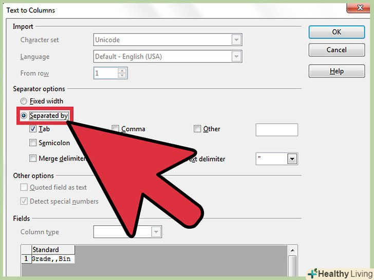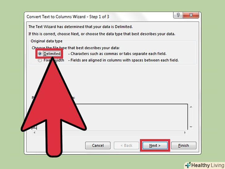 Виберіть опцію "з роздільниками«, а потім натисніть»Далі".Розділювач встановлює межу між точками даних у текстовому файлі (у нашому випадку це кома).[1]