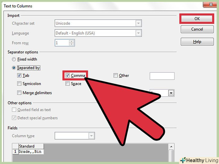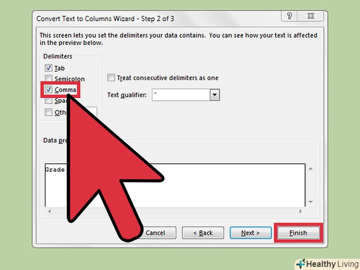 Поставте галочку поруч з опцією "кома «і натисніть»Готово".Весь текст, який раніше був розділений комами, тепер буде поміщений в окремі стовпці.[5]