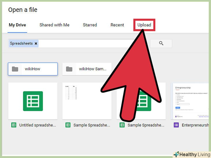 Перетягніть файл CSV у вікно завантаження. коли почнеться завантаження файлу, на екрані з'явиться індикатор прогресу.- Або натисніть на кнопку "Виберіть файл на комп'ютері" посередині вікна завантаження і виберіть файл CSV на комп'ютері.