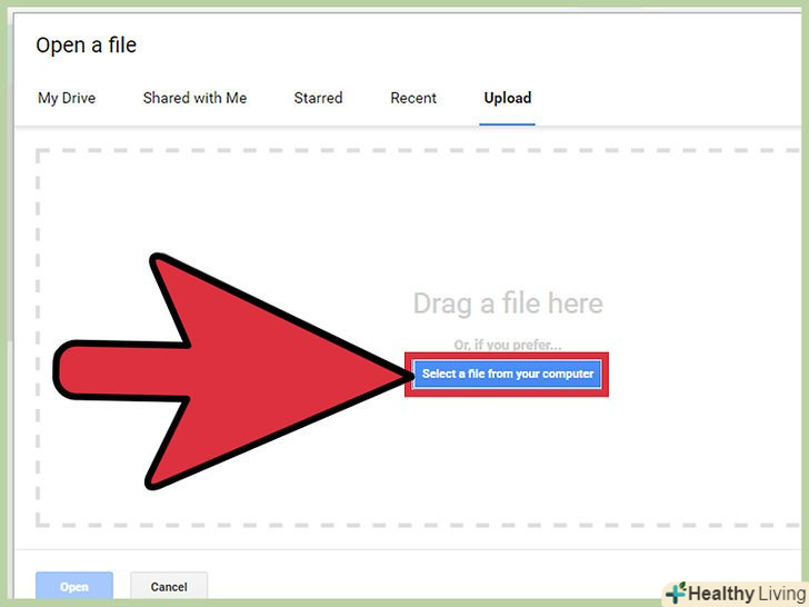 Натисніть на кнопку "Відкрити вікно вибору файлів" в правому верхньому куті сторінки.вона виглядає як значок папки. Після цього на екрані з'явиться вікно»відкрийте файл".