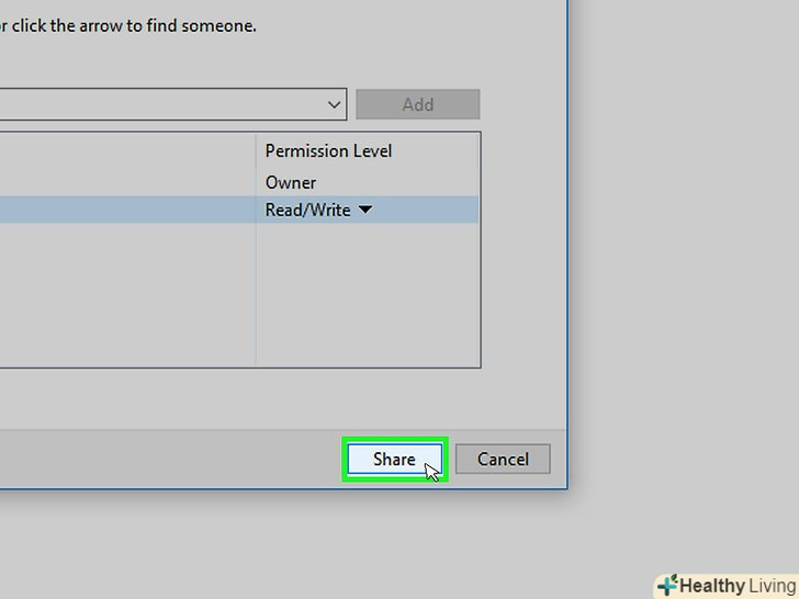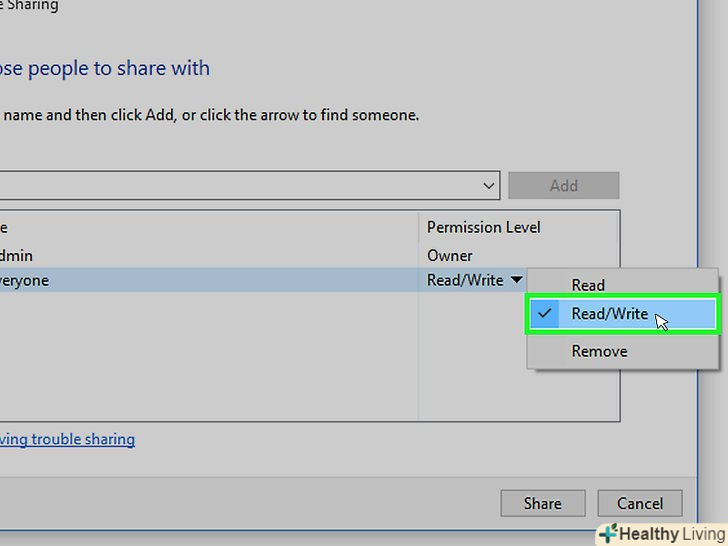 Дозвольте іншим користувачам додавати та видаляти файли. натисніть «читання ▼ «праворуч від» Все«, а потім в меню виберіть»читання і запис".