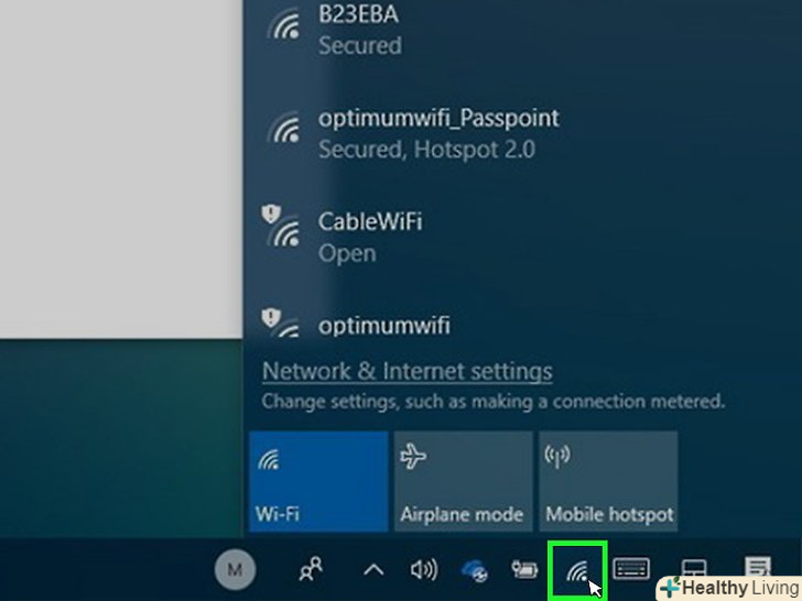 - Щоб з'ясувати, до якої мережі підключений ваш комп'ютер, клацніть по значкув нижній правій частині екрану (Windows) або по значку