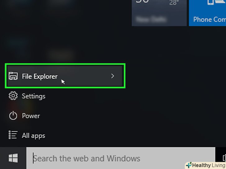 Відкрийте вікно Провідника.клацніть по значку у вигляді папки в нижній лівій частині меню»Пуск".