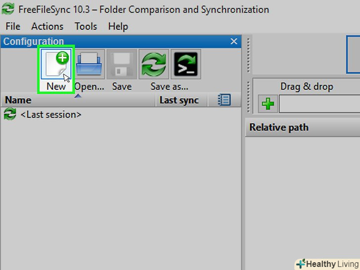 НатиснітьNew (створити).ця опція знаходиться у верхній лівій частині вікна FreeFileSync. Вміст вікна FreeFileSync буде очищено.