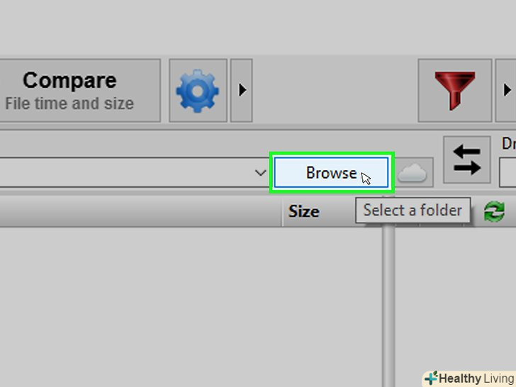 Додайте папку або накопичувач для синхронізації. це папка або накопичувач, з яким будуть синхронізовані файли вашої папки. Натисніть " Browse "(огляд) у правій частині вікна FreeFileSync, виберіть папку або накопичувач і натисніть «Відкрити» (Windows) або «вибрати» (Mac).
