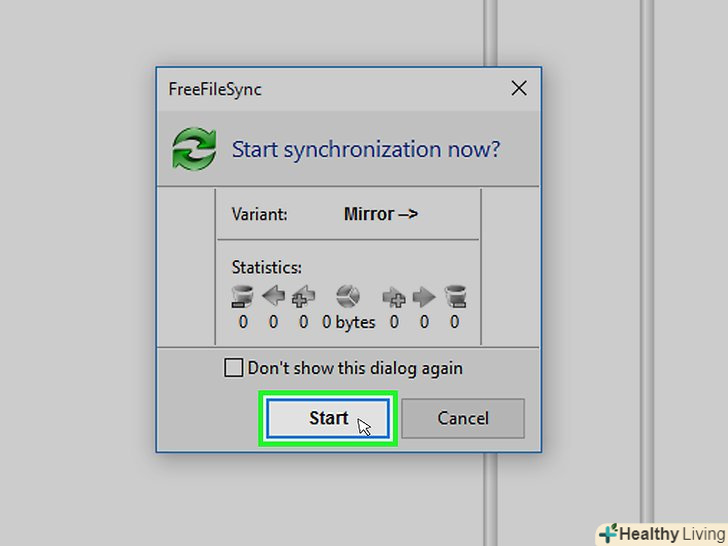 Перезапустіть синхронізацію. щоб виконати повторну синхронізацію своєї папки з іншою папкою або носієм, знайдіть і двічі клацніть по файлу конфігурації, який ви зберегли. Це призведе до запуску процесу синхронізації.- Якщо ви перемістите або перейменуєте свою папку або зовнішній накопичувач, синхронізація файлів не спрацює, і вам доведеться змінити конфігурацію.