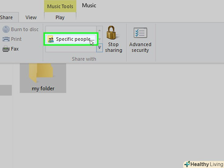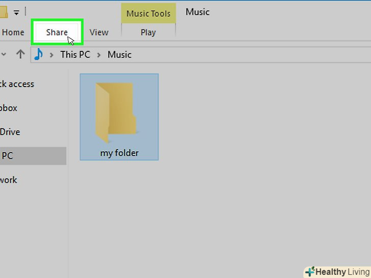 Перейдіть на вкладкуПоділитися. вона знаходиться у верхній лівій частині папки. У верхній частині вікна відкриється панель інструментів.
