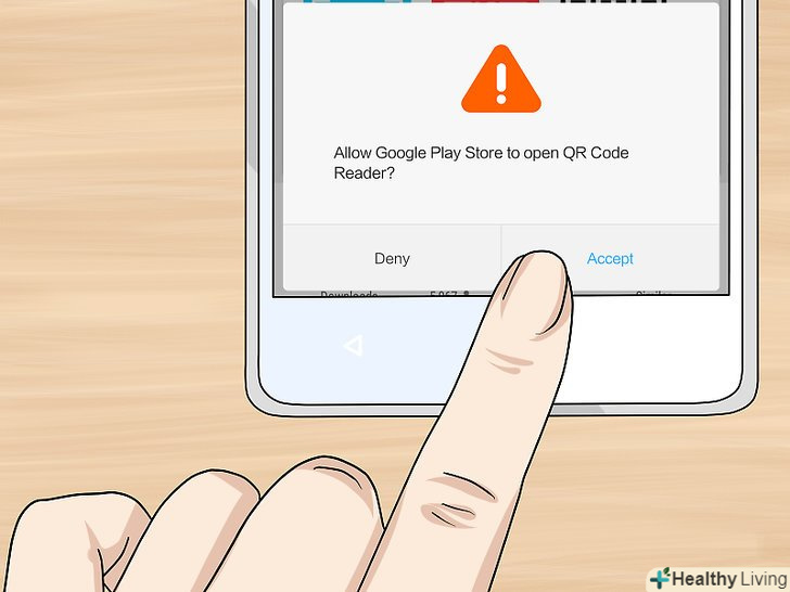 Клацніть поПрийняти.ця кнопка знаходиться посередині спливаючого вікна. Додаток "QR Code Reader" завантажиться на пристрій.
