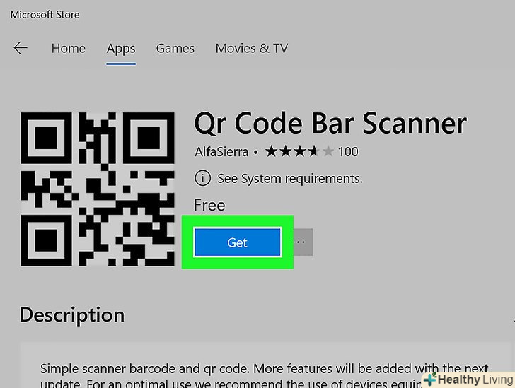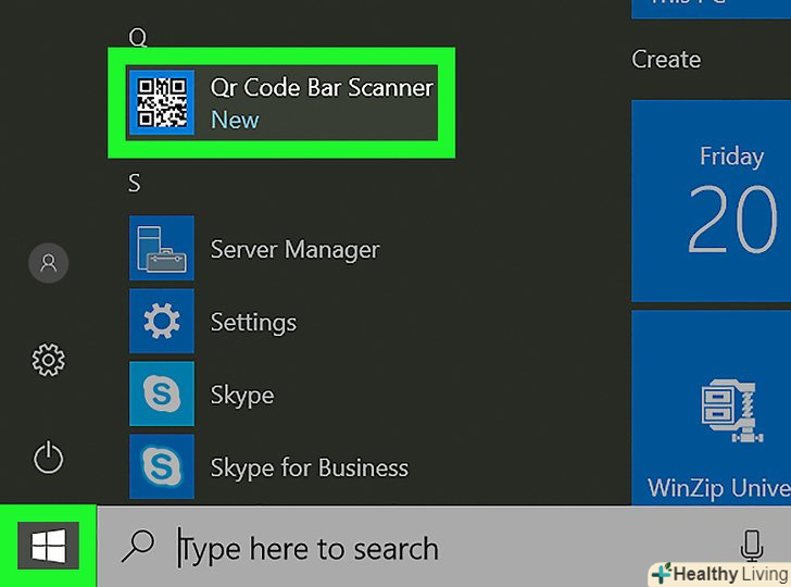 Відкрийте програму "QR Code Bar Scanner". Натисніть «Пуск», введіть qr code, натисніть «Qr Code Bar Scanner», а потім клацніть «Закрити», коли з'явиться запит.