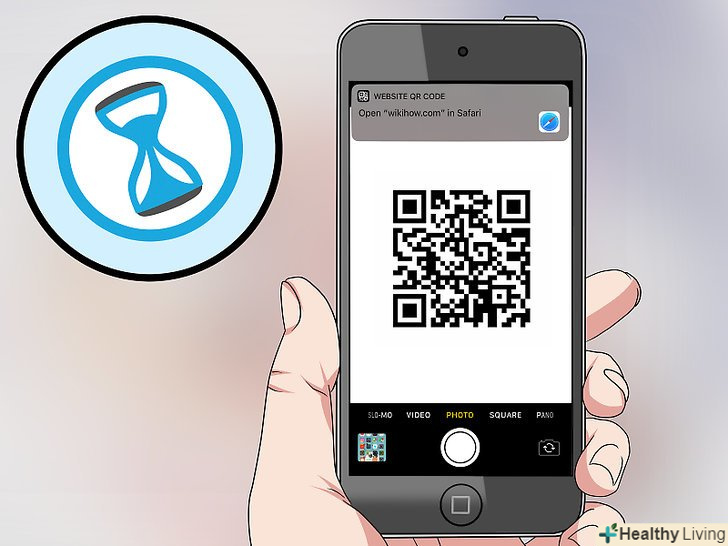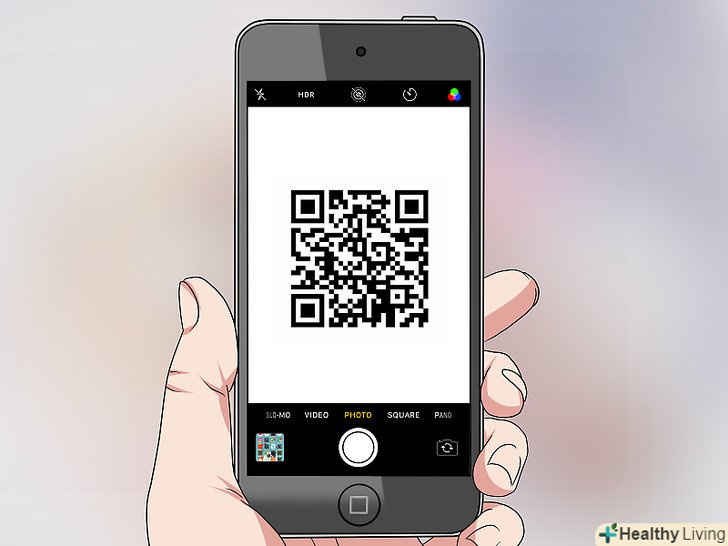 Наведіть камеру на QR-код.через деякий час камера пристрою сфокусується на QR-коді.- Якщо включилася фронтальна камера, спочатку клацніть по значку у вигляді камери в нижньому правому куті екрану, щоб переключитися на основну камеру.