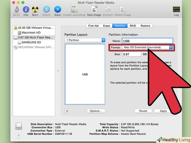 Введіть назву розділу або SSD-диска.зробіть це в розділі "Інформація про розділ". Тепер відкрийте меню " Формат «і виберіть в ньому»Mac OS X Extended (журнальний)".