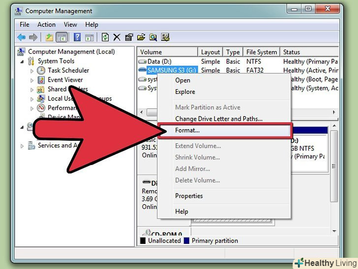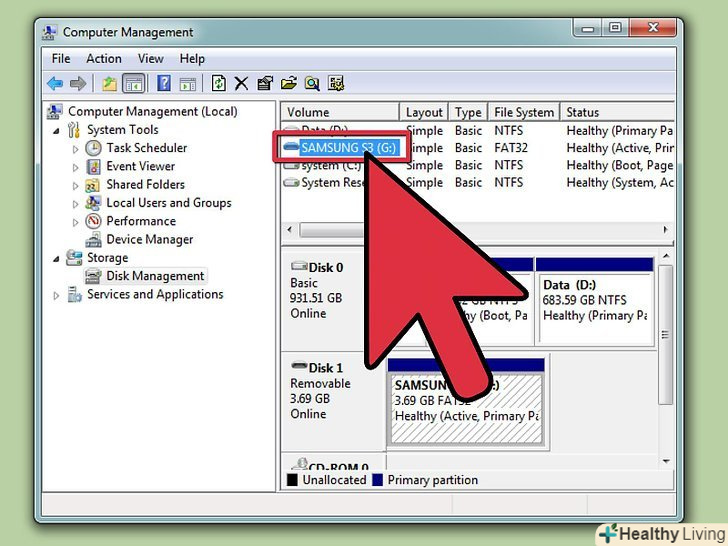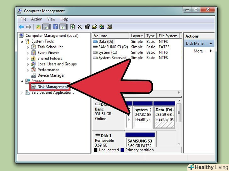 Натисніть "Управління дисками «на лівій панелі вікна»управління комп'ютером".