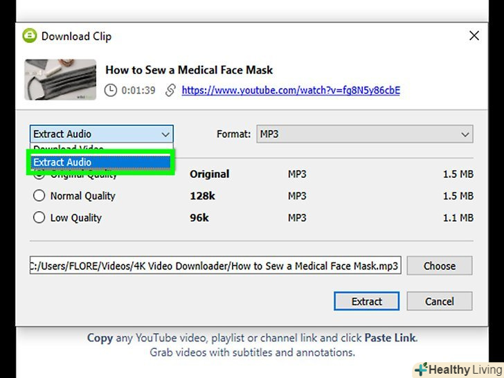 Клацніть по "завантажити відео"і в меню виберітьВитягти звук. це меню знаходиться в лівому верхньому кутку вікна.