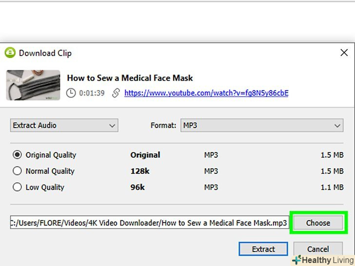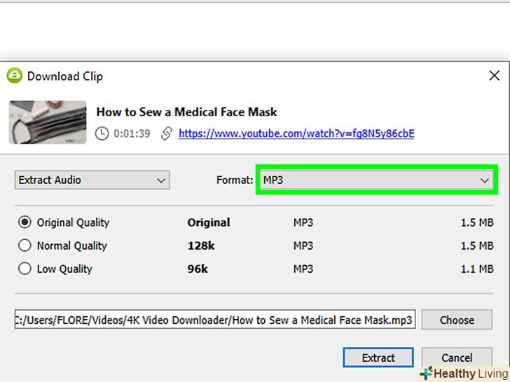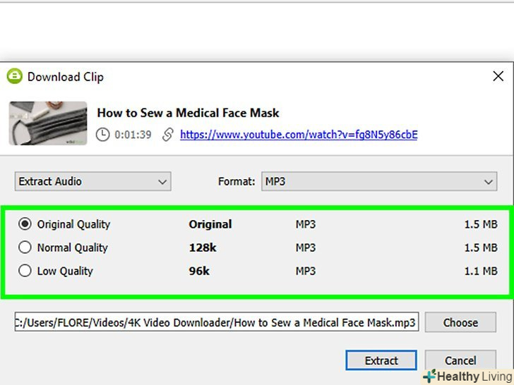 Виберіть якість (за бажанням). за замовчуванням вибрано найвищу якість — щоб змінити його і бітрейт, встановіть прапорець зліва від потрібної опції.- Виберіть менший бітрейт, щоб зменшити розмір аудіофайлу.