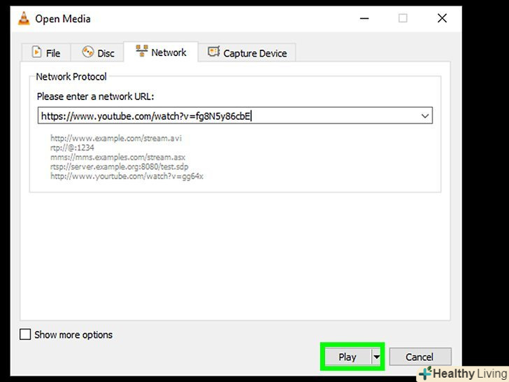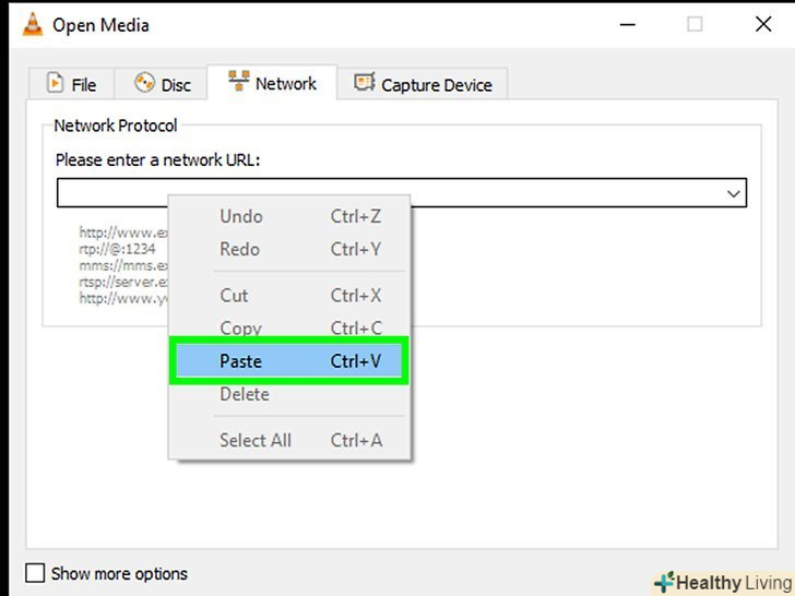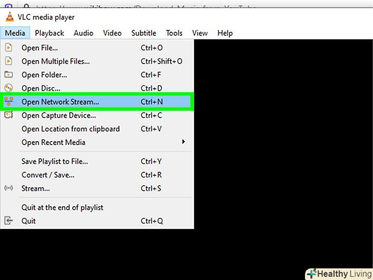 Створіть новий мережевий потік.мережеві потоки дозволяють відтворювати контент з веб-браузера в VLC. Для цього виконайте наступні дії:- Windows: натисніть "медіа" gt;»Відкрити URL".
