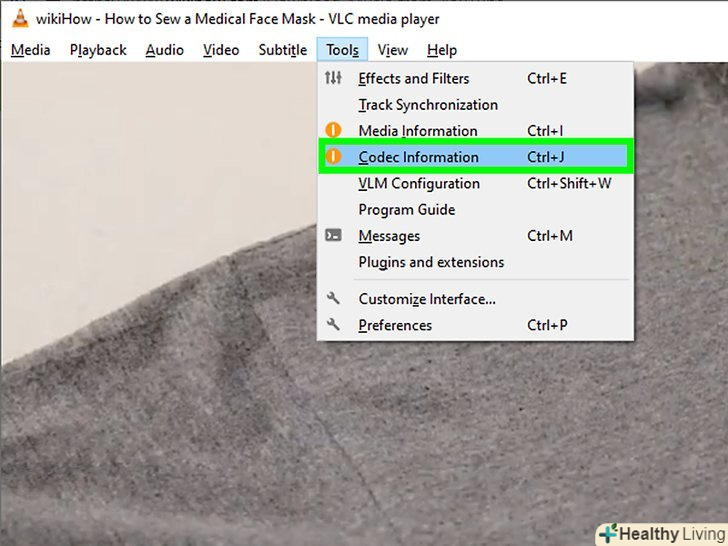 Відкрийте інформацію про кодек відео. для цього:- Windows: натисніть "Інструменти" gt;»інформація про кодек".