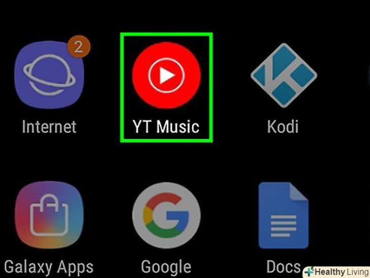 Запустіть програму YouTube Music на мобільному пристрої.для цього торкніться значка у вигляді білого трикутника на червоному тлі.