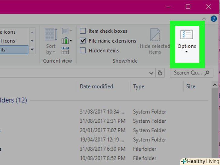 НатиснітьПараметри. це прямокутний значок в правій частині меню "Вид".