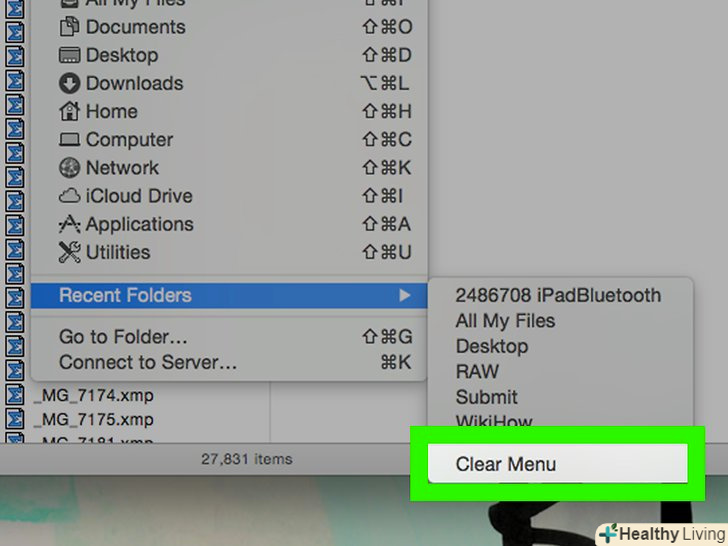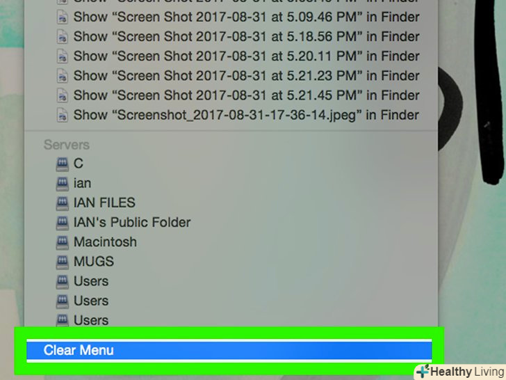 НатиснітьОчистити меню. ви знайдете цю кнопку в нижній частині спливаючого меню. Так ви очистите список папок, які недавно відкривали.