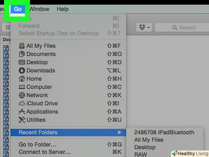 Клацніть поПерехід. це меню знаходиться в лівій половині панелі меню у верхній частині екрана. Відкриється випадаюче меню.
