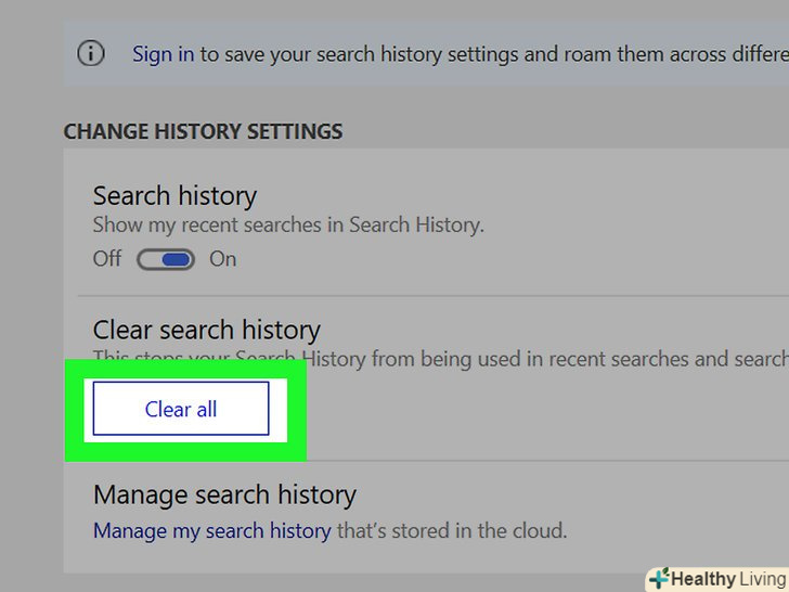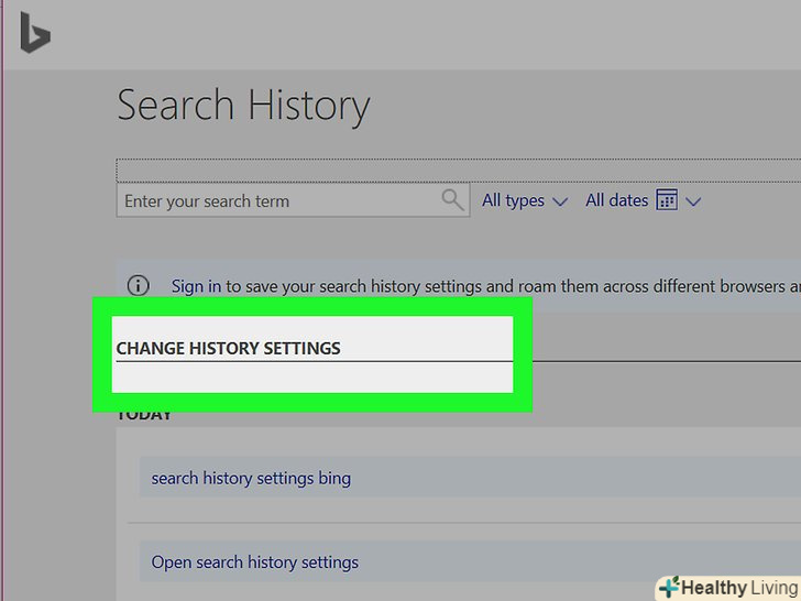 Клацніть поЗмінити параметри історії.ця опція знаходиться у верхній частині сторінки Bing. Відкриється меню.