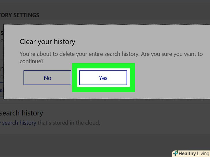 НатиснітьТак, коли з'явиться запит.так ви повністю очистите історію пошуку Кортани, як локально, так і онлайн.