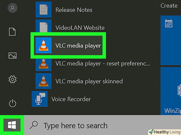 Запустіть VLC. натисніть на значок у вигляді оранжевого конуса.- Якщо на комп'ютері Не встановлено цей програвач, скачайте його на сайті https://www.videolan.org . VLC є безкоштовним медіапрогравачем з безліччю корисних функцій; він підтримує практично всі відеоформати. [1]