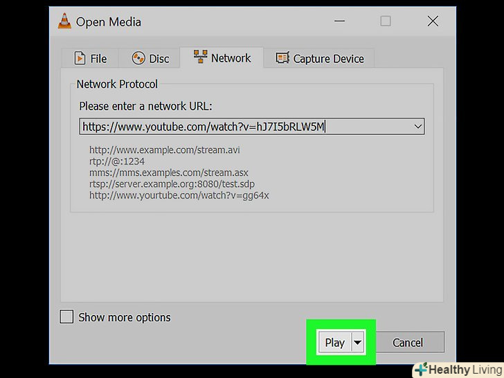НатиснітьВідтворити (Windows} або Відкрити (Mac). відео YouTube відкриється в VLC.